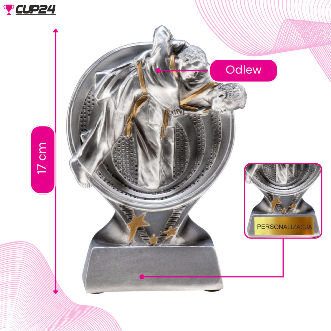 Pokryta srebrnym kolorem, figurka dodaje prestiżu i elegancji, będąc nie tylko nagrodą, ale także wyjątkowym elementem dekoracyjnym. Srebrny odcień symbolizuje wartość i wysokie osiągnięcia w judo, czyniąc z tej figurki wyjątkowe wyróżnienie.