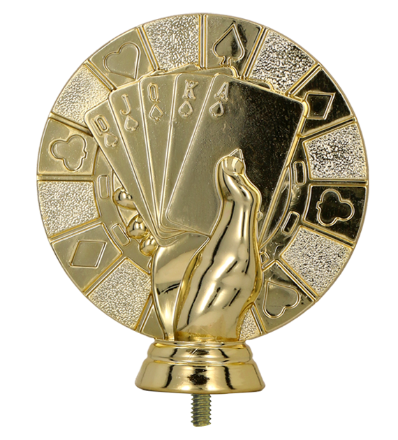 Figurka plastikowa - karty to świetna nagroda dla każdego miłośnika gier karcianych, który pokazał swoje umiejętności i szczęście w rozgrywce. Figurka przedstawia cztery karty z różnych kolorów, symbolizujące pełną gamę możliwości i kombinacji. Figurka ma 9,5 cm wysokości i jest pokryta złotą farbą, która nadaje jej blasku i prestiżu. Figurka może być użyta jako samodzielna nagroda lub jako element dekoracyjny pucharu. Figurka plastikowa - karty to idealny prezent dla każdego, kto lubi rywalizację i zabawę z kartami.
