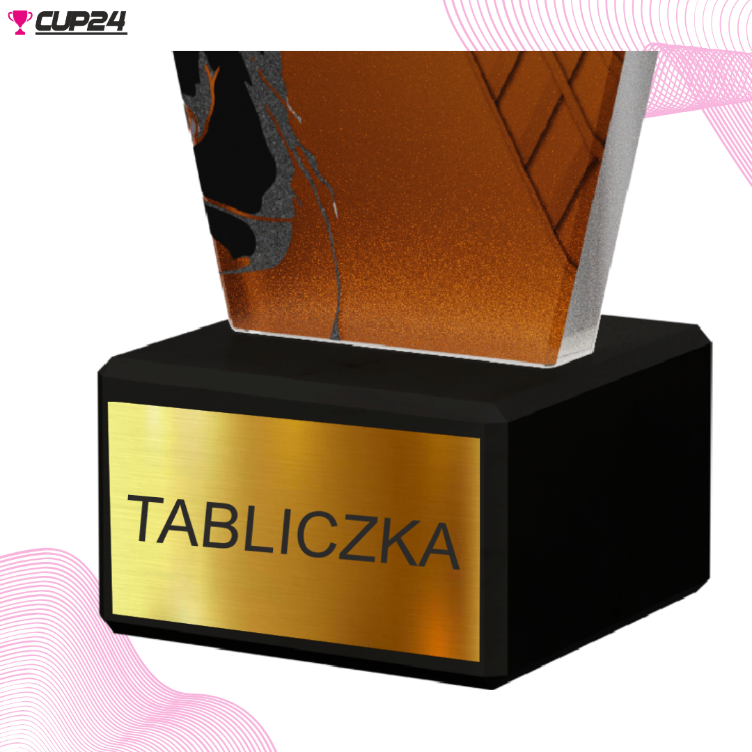 Na podstawku znajduje się miejsce na personalizowaną tabliczkę, którą można wykonać techniką graweru laserowego lub nadruku kolorowego. Dzięki temu masz możliwość dodania indywidualnego przesłania, imienia zwycięzcy, daty turnieju lub innego ważnego tekstu, który nada trofeum osobisty charakter.