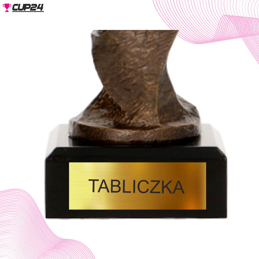 Na podstawie figurki można umieścić tabliczkę z dowolnym napisem, co pozwala na dodanie osobistego przesłania. Może to być imię i nazwisko obdarowanego, nazwa zawodów, data czy specjalne podziękowanie. Tabliczka może być grawerowana lub wykonana z nadrukiem kolorowym, co daje możliwość pełnej personalizacji prezentu.
