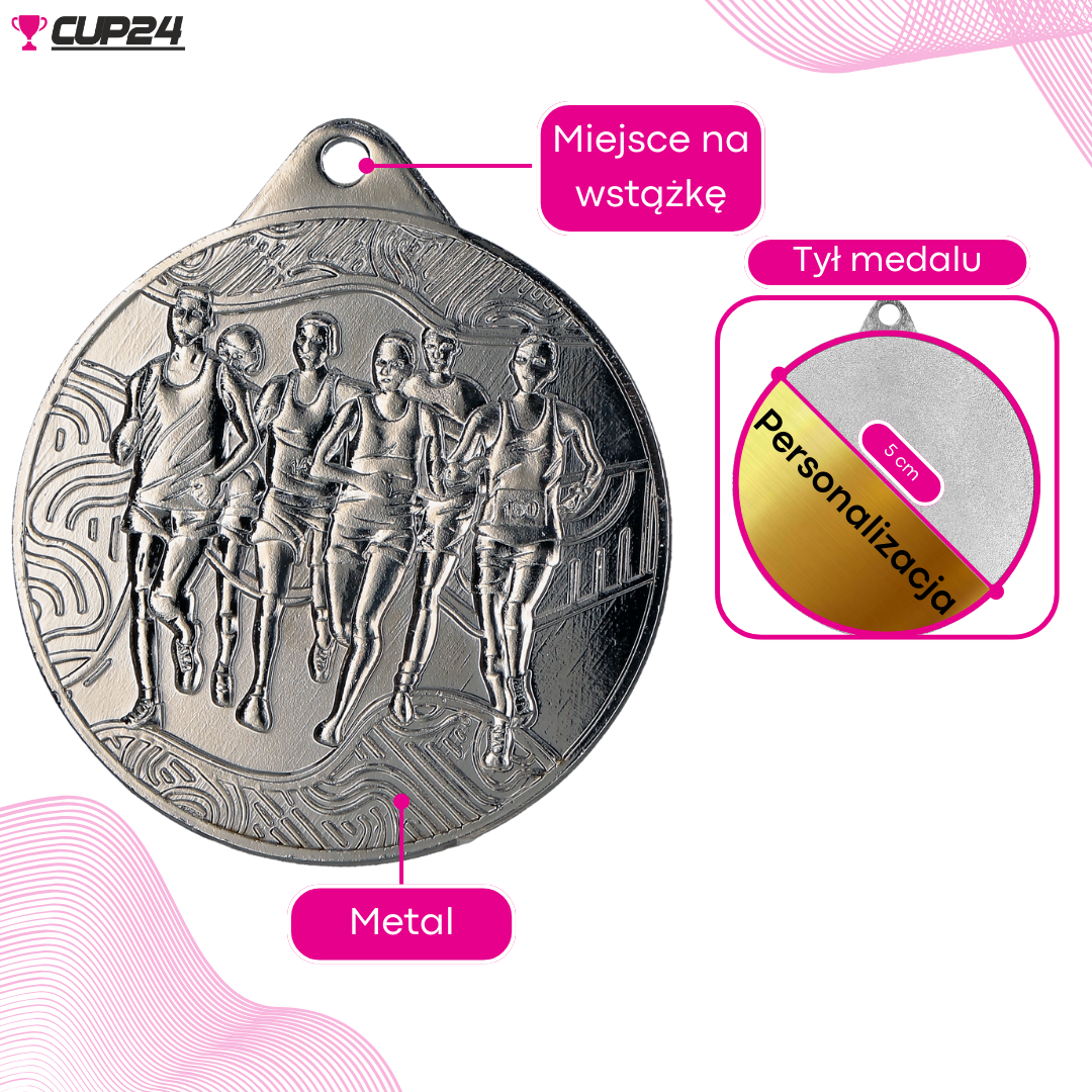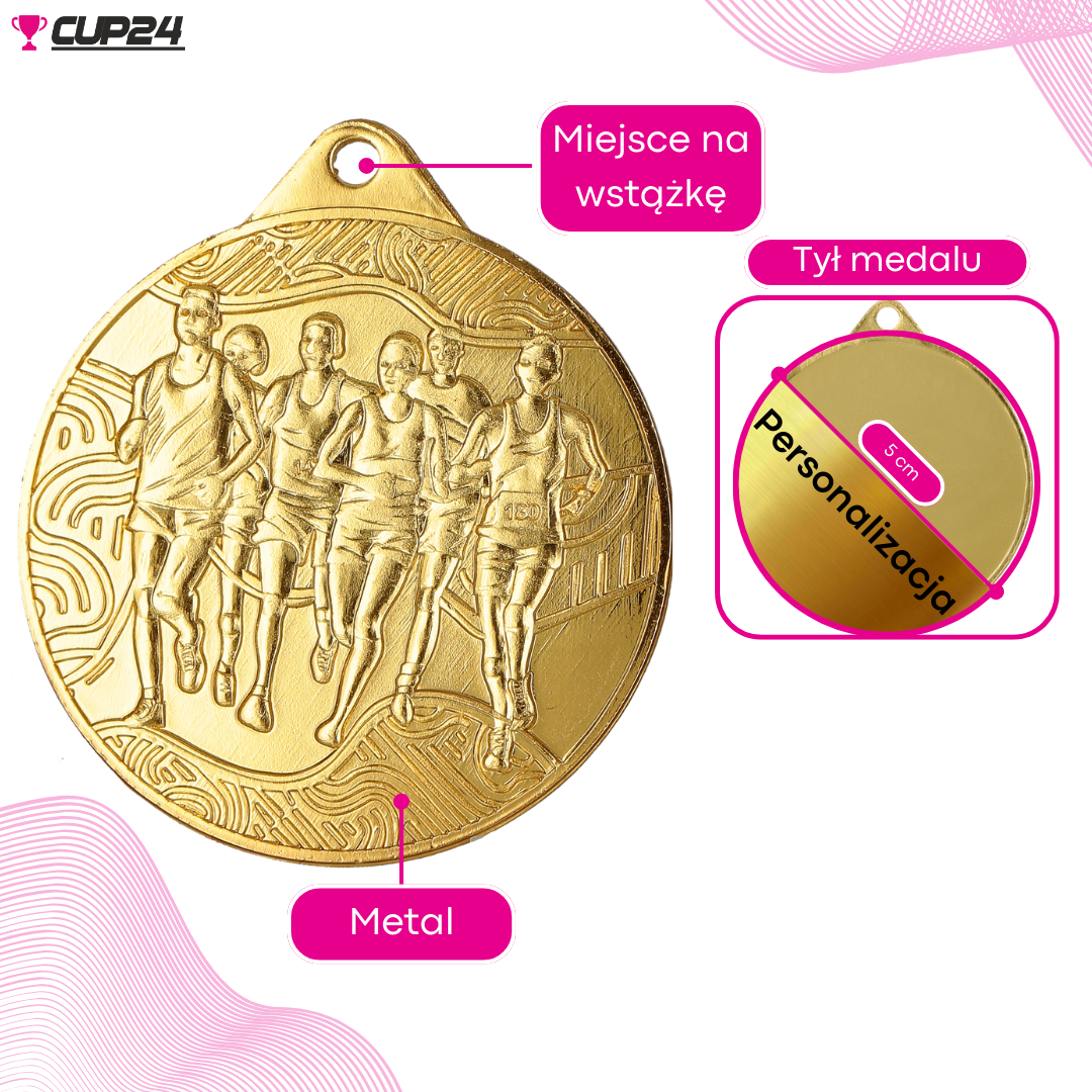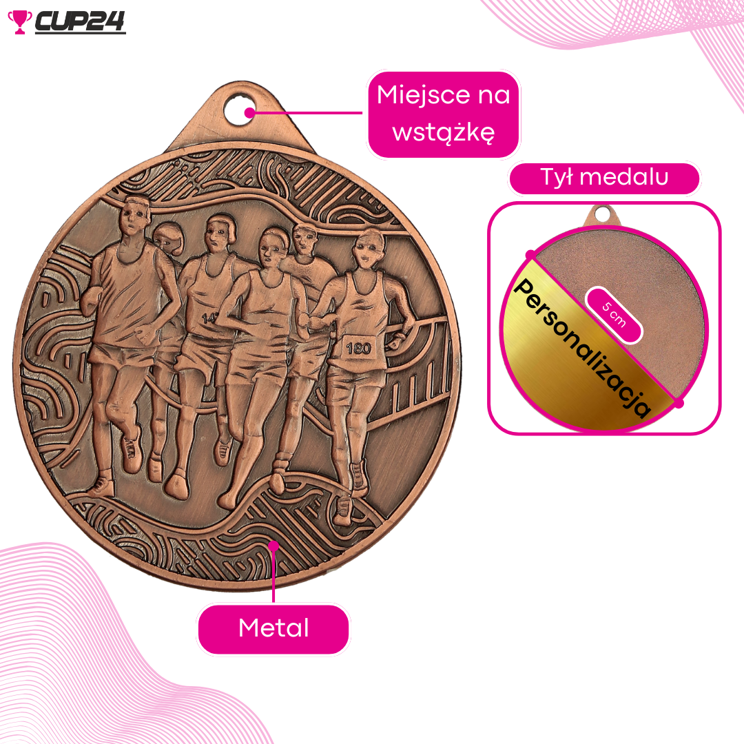 Medal wyróżnia się nie tylko kolorem, ale także precyzyjnym wykonaniem. Na awersie znajduje się wizerunek grupy biegaczy, symbolizujący energię i ducha sportowej rywalizacji, a na rewersie widnieje napis „Bieganie”.
