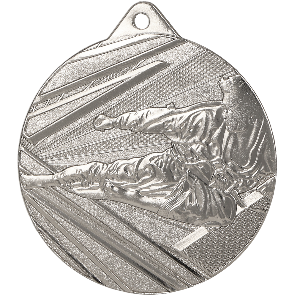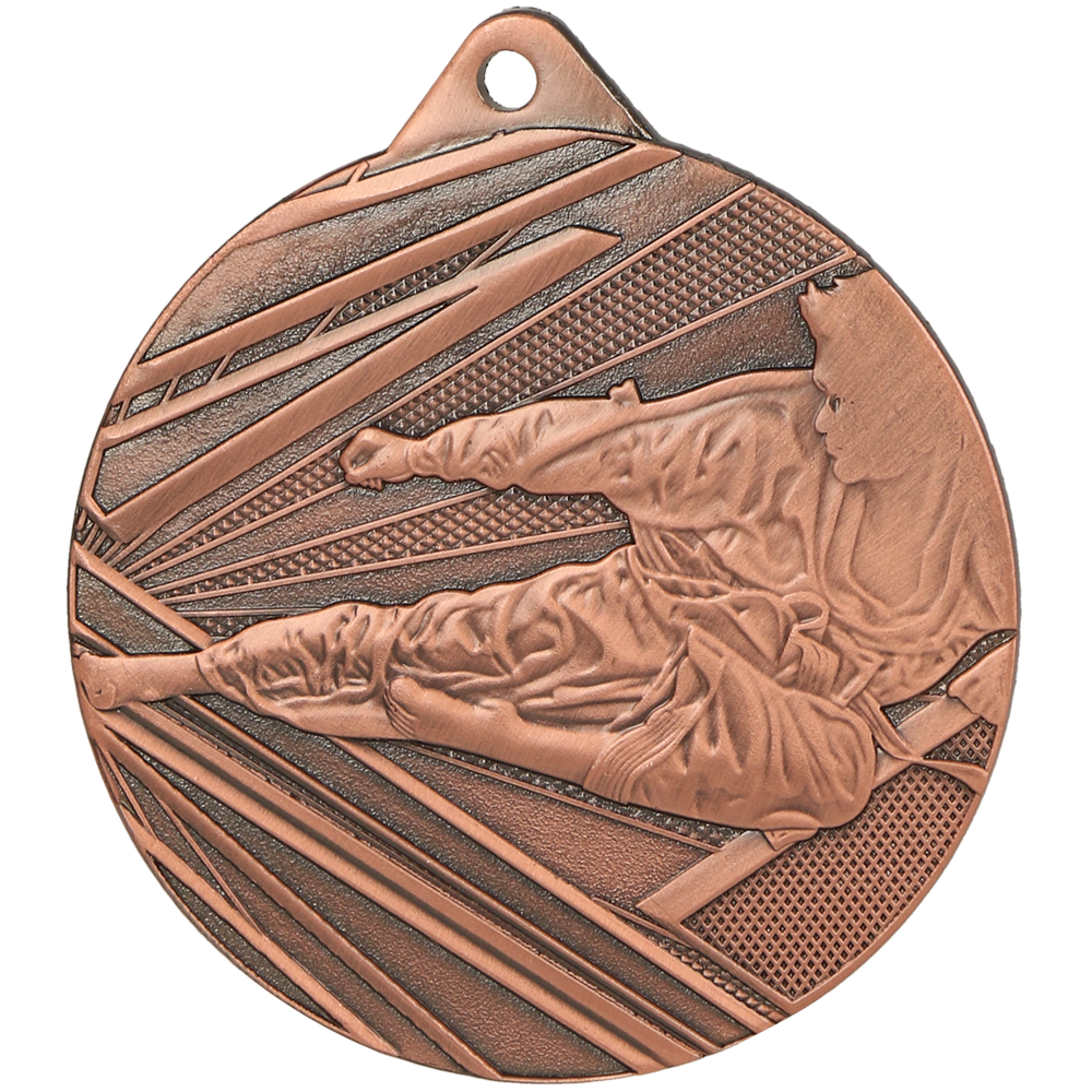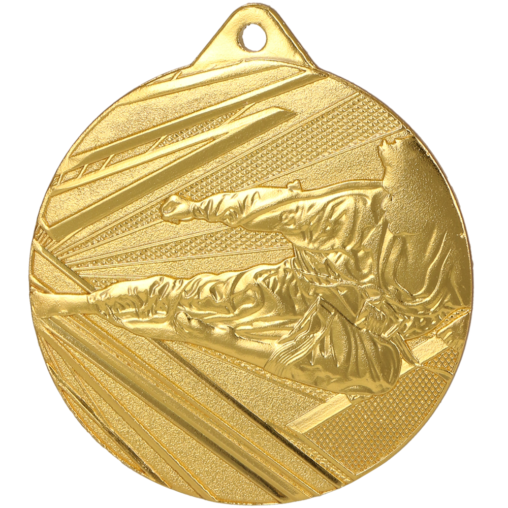 Medal karate z serii MK-50 to medal, który jest idealny dla miłośników karate i sztuk walki. Medal wykonany jest z solidnej stali, która ma trzy kolorowe wykończenia: złote, srebrne i brązowe. Medal ma średnicę 50 mm i grubość 2 mm, co czyni go lekkim i wygodnym do noszenia. Na medalu znajduje się motyw zawodnika karate, który tworzy atrakcyjny wizualnie efekt i podkreśla ducha współzawodnictwa i siłę sportu jako narzędzia do pokonywania własnych słabości. Medal karate z serii MK-50 to doskonały sposób na nagrodzenie najlepszych karateków i uczestników różnych zawodów i turniejów karate. Medal ten podkreśla ducha sportu i motywuje do dalszego działania.