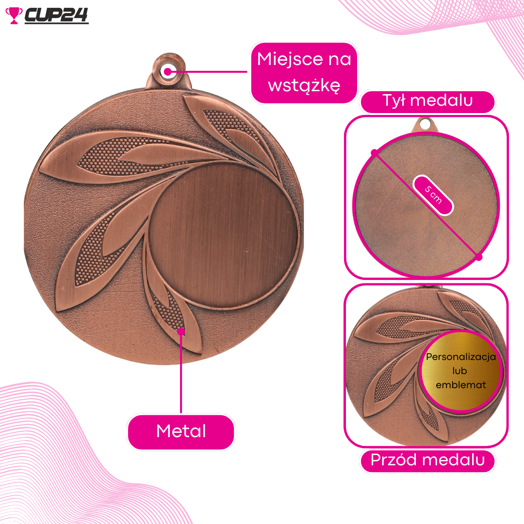 Medal ma średnicę 50 mm i grubość 2 mm, co nadaje mu odpowiednią wagę i wymiar. Dzięki temu jest dobrze widoczny i wygodny do noszenia.