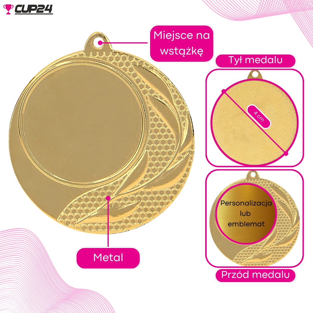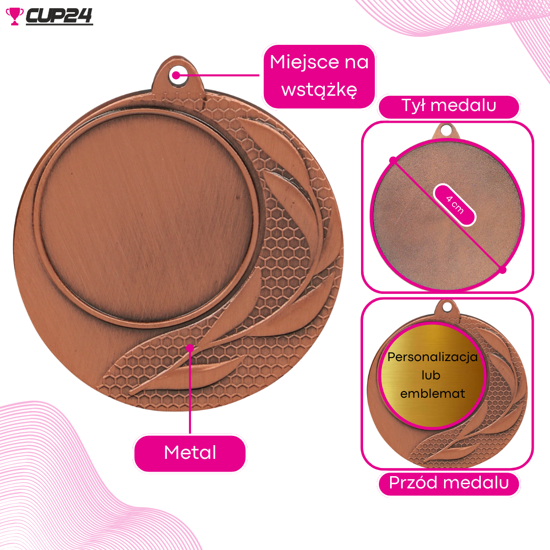 Medal ma średnicę 40 mm i grubość 1,5 mm, co czyni go lekkim i wygodnym do noszenia. Oryginalny design sprawia, że medal wyróżnia się na tle innych nagród, zachwycając sportowców i podkreślając ich wyjątkowe osiągnięcia.