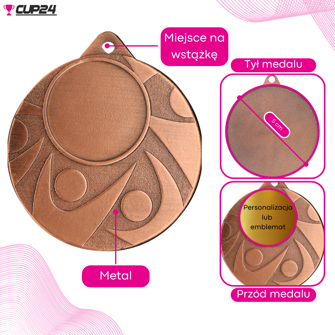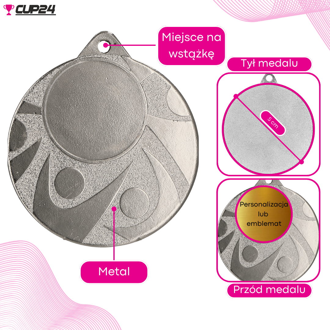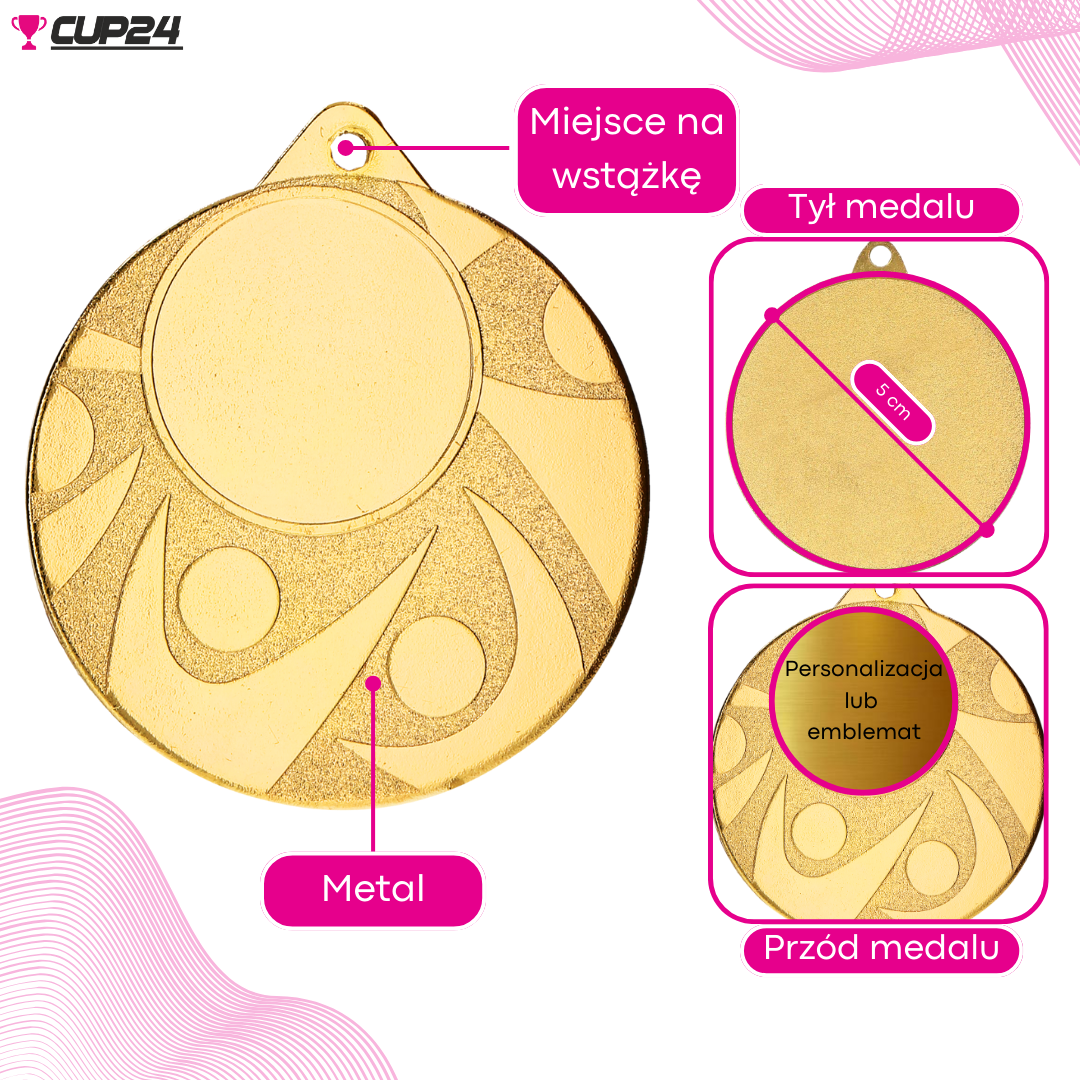 Na rewersie medalu można wygrawerować dowolną grafikę lub tekst, dodając nazwy zawodów, datę, kategorię, miejsce, imię i nazwisko laureata lub dedykację. To sprawia, że medal staje się jeszcze bardziej wyjątkowy i osobisty.