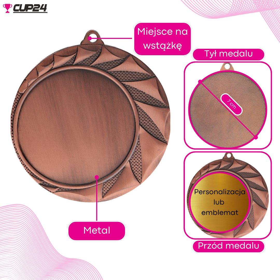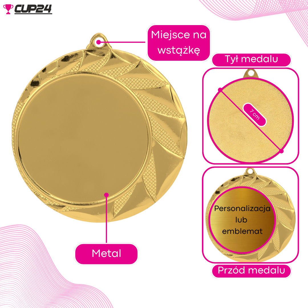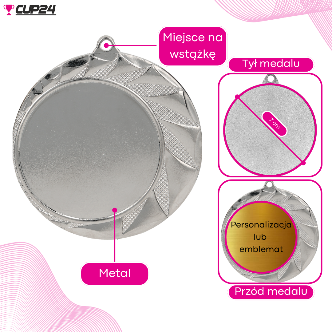 Medal stalowy to medal o średnicy 70 mm i grubości 3 mm, wykonany z trwałej stali. Jego imponujący rozmiar sprawia, że jest doskonale widoczny i wyróżnia się spośród innych nagród.