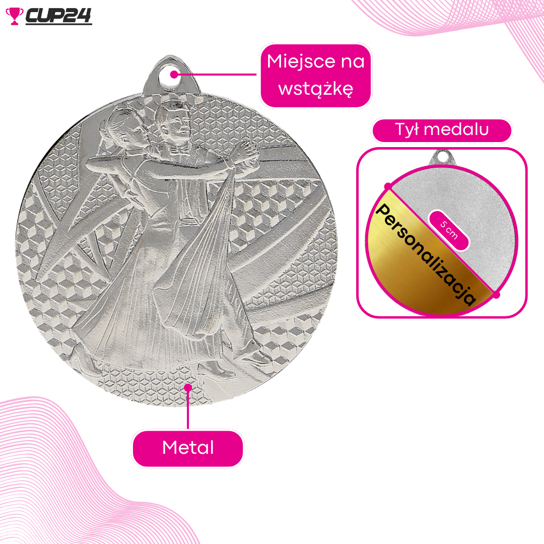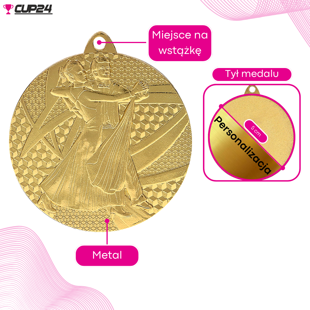 Medal taneczny o średnicy 50 mm to doskonały sposób na uhonorowanie uczestników zawodów tanecznych. Symbolizuje pasję, talent i ducha współzawodnictwa, inspirując do dalszego rozwoju.