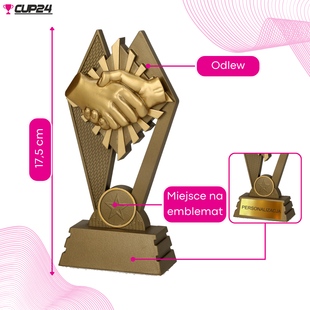 Ta elegancka statuetka, wykonana z materiału imitującego metal, jest nie tylko pięknym przedmiotem dekoracyjnym, ale również symbolem wdzięczności i współpracy. Jej stylowy wygląd i wykończenie sprawiają, że jest to idealny wybór na prezent, który wyraża uznanie i szacunek dla osób, które mają znaczący wpływ na Twoje życie lub karierę.
