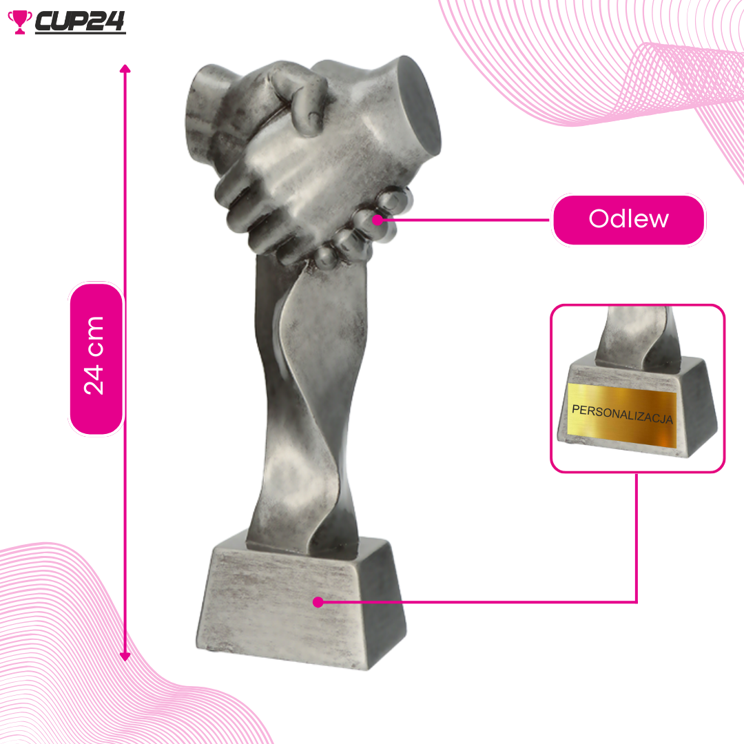 Należąca do kategorii eleganckich i stylowych statuetek odlewanych, statuetka z dwoma uściśniętymi dłońmi stanowi wyjątkową pamiątkę dla każdego, kto docenia wartość współpracy. To więcej niż tylko nagroda – to trwałe przypomnienie o znaczeniu budowania relacji opartych na wzajemnym zaufaniu i wspólnym dążeniu do celów.