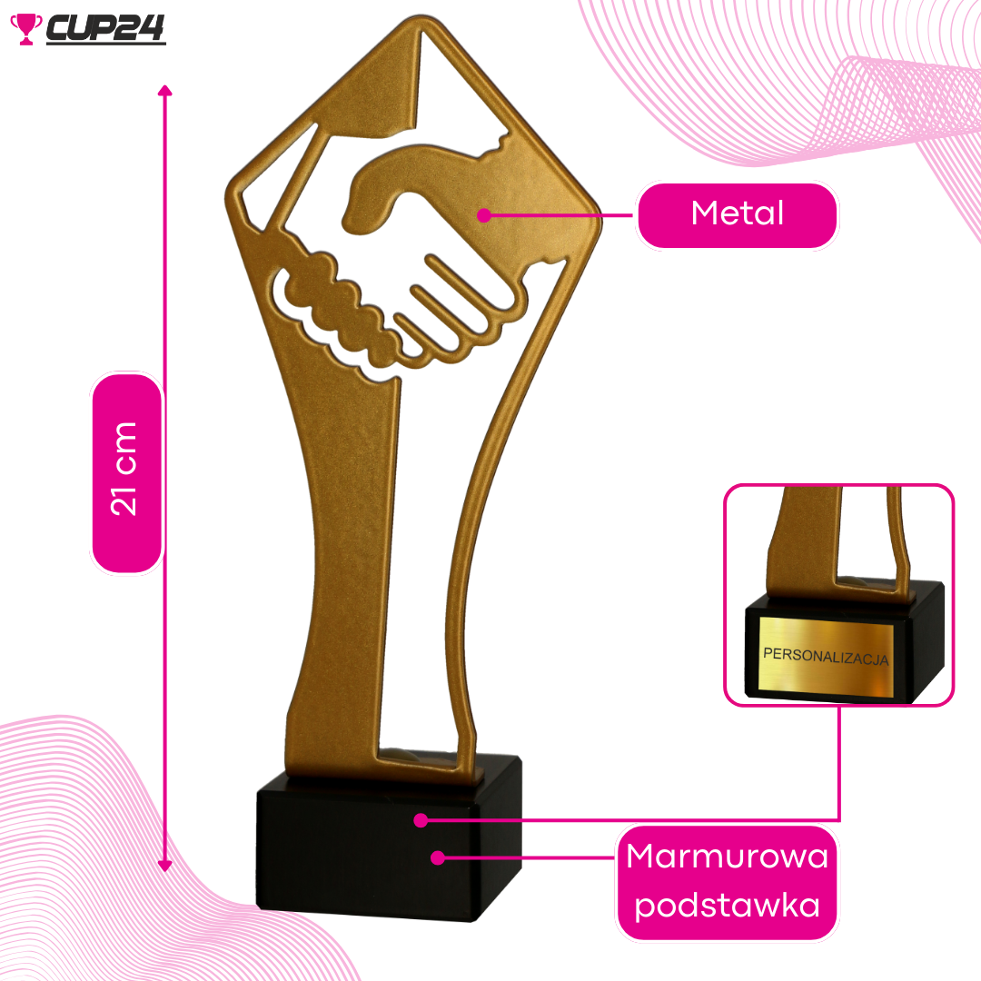 Ogólna Trofeum Statuetka metalowe z marmurową podstawą - Uścisk dłoni