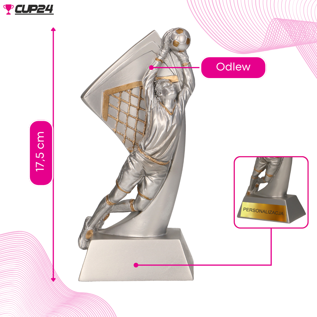 Statuetka ta jest idealnym rozwiązaniem dla podkreślenia wyjątkowych umiejętności i odwagi najlepszych bramkarzy. Wykonanie z materiału imitującego metal nadaje jej nowoczesny i elegancki wygląd, co sprawia, że jest to nie tylko nagroda, ale także wyjątkowy element dekoracyjny.