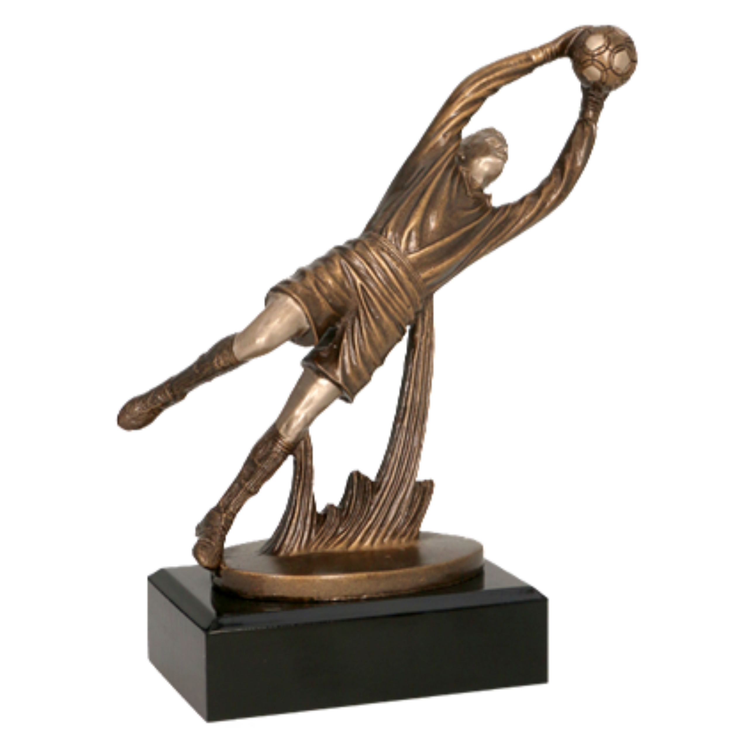 Ta statuetka odlewana jest hołdem dla bramkarzy, prawdziwych bohaterów piłkarskich boisk, którzy z determinacją i odwagą bronią swojej bramki. Przedstawiając bramkarza w akcji, z pełnym zaangażowaniem próbującego zatrzymać piłkę, statuetka oddaje dynamiczność i emocje towarzyszące obronie bramki. Jej nowoczesny kształt i elegancka kolorystyka podkreślają styl i kluczową rolę bramkarza w drużynie.