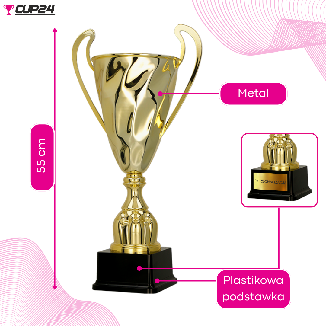 Wykonany z wysokiej jakości metalu, puchar łączy w sobie trwałość z elegancją. Jego odporność na uszkodzenia gwarantuje, że będzie służył jako trwały symbol osiągnięć przez wiele lat.
