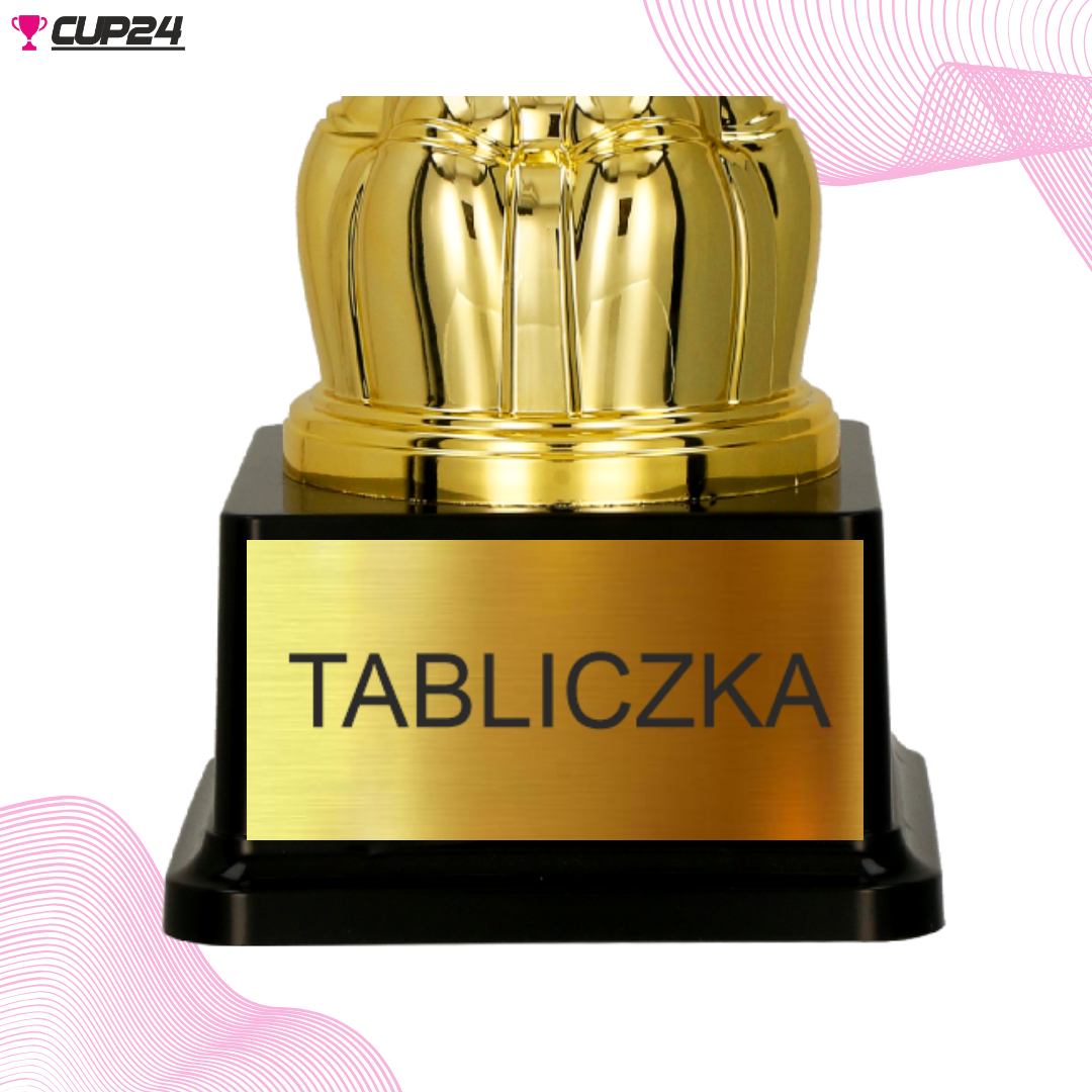 Na kielichu istnieje możliwość umieszczenia emblematu, co pozwala na personalizację pucharu zgodnie z dyscypliną sportową lub innym wybranym symbolem. Podstawa z plastiku oferuje miejsce na tabliczkę z grawerunkiem, umożliwiając dodanie indywidualnego przesłania.