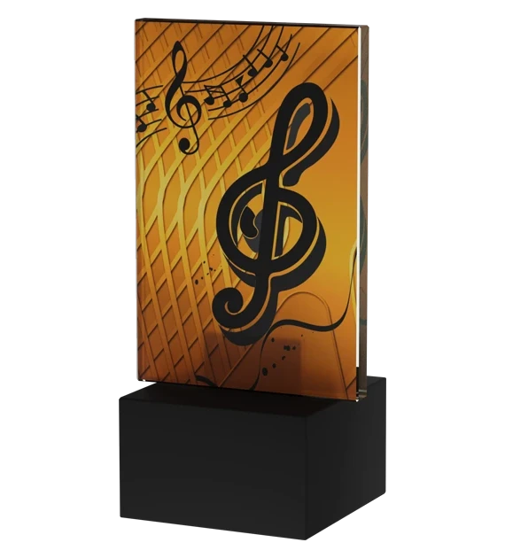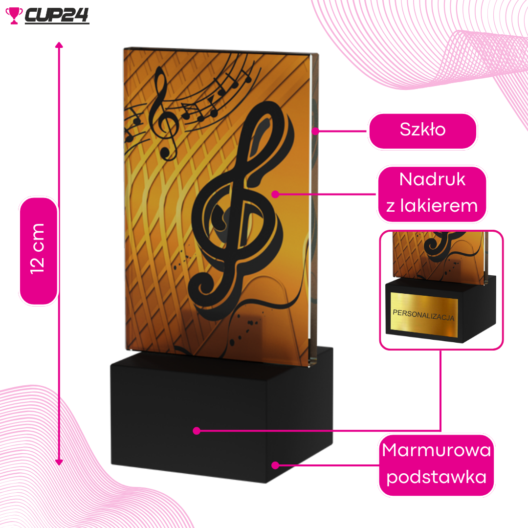Statuetka została wykonana z eleganckiego szkła i ozdobiona motywem muzycznym, w tym kluczem wiolinowym i pięciolinią. Możliwość personalizacji poprzez dodanie dowolnego napisu czyni ją jeszcze bardziej specjalną.
