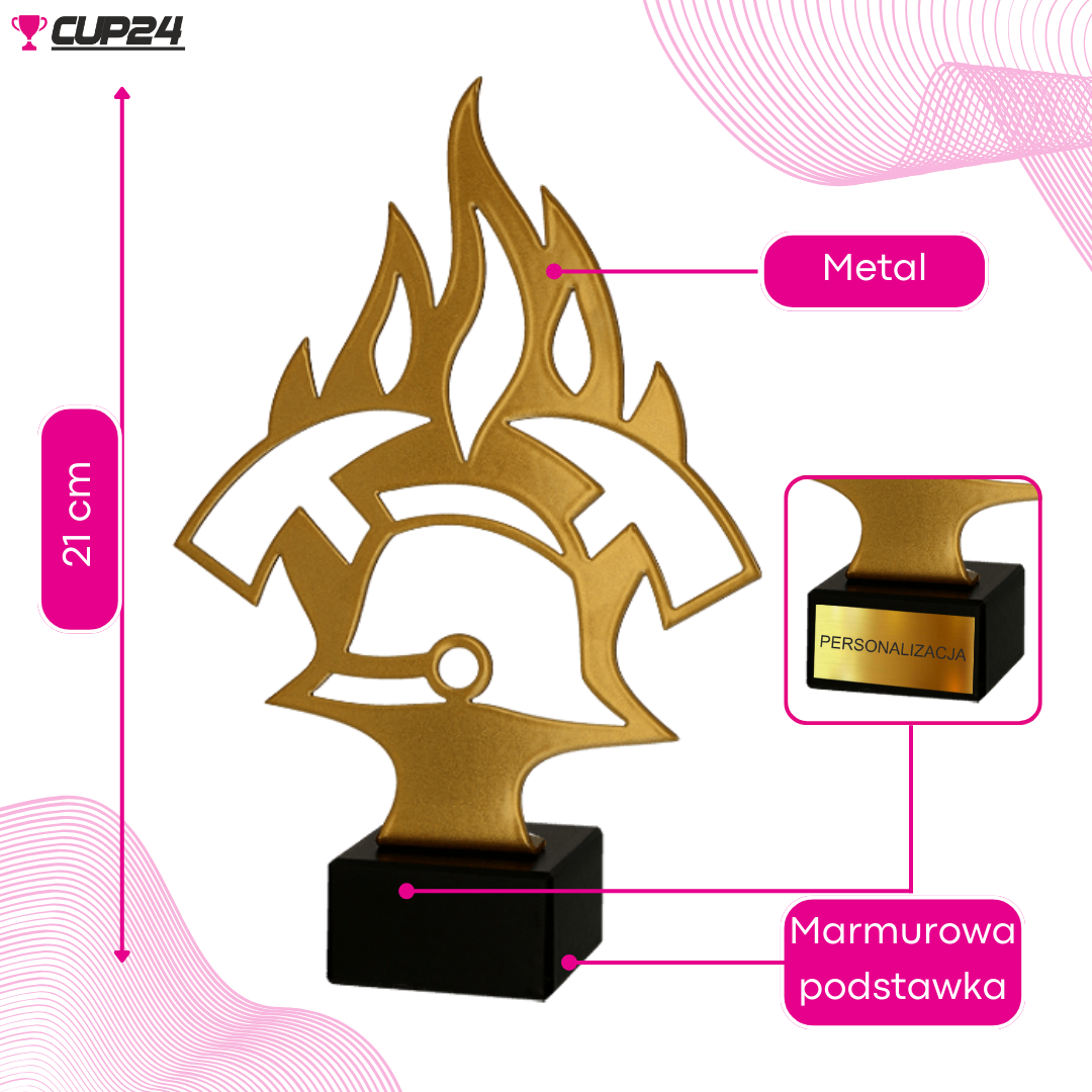 Umieszczona na solidnej podstawie z marmuru, statuetka oferuje przestrzeń na tabliczkę z dowolnym napisem, co umożliwia spersonalizowanie nagrody. Dzięki opcji graweru laserowego lub nadruku kolorowym, każda statuetka może zostać dostosowana do konkretnego strażaka, zespołu lub wydarzenia, czyniąc ją nie tylko nagrodą, ale także cenną pamiątką.