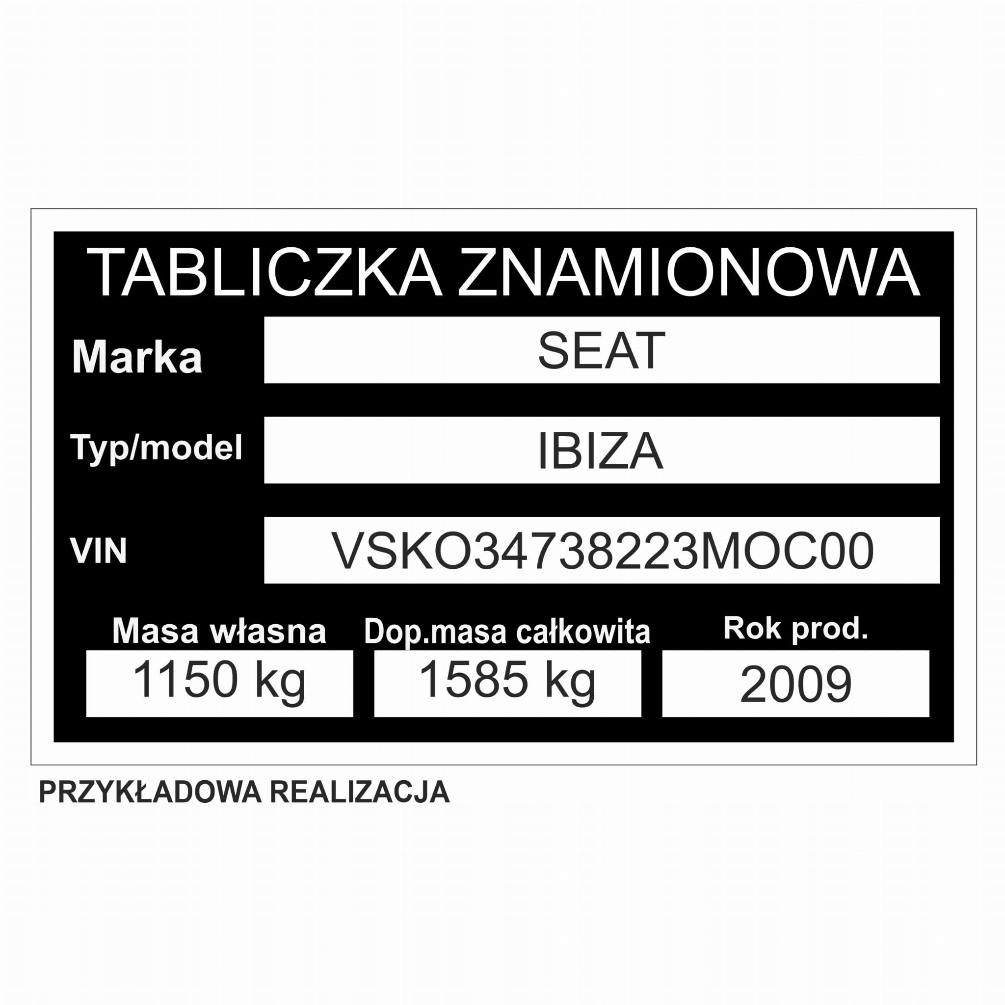 Tabliczka znamionowa zastępcza z wypełnieniem