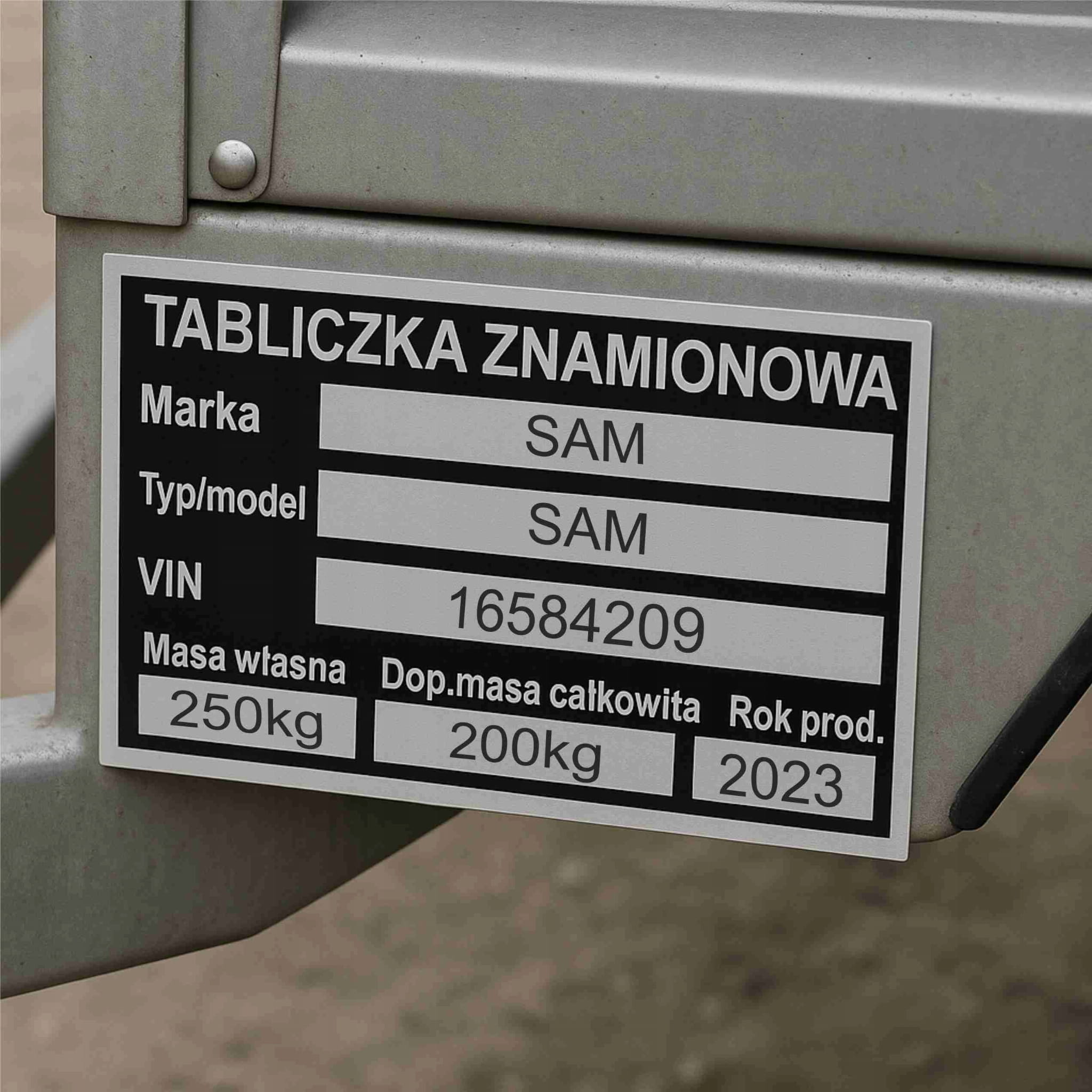 Potrzebujesz solidnej tabliczki informacyjnej do swojego pojazdu lub maszyny? Nasza tabliczka znamionowa zastępcza z trwałym nadrukiem to niezawodne rozwiązanie – odporne na warunki atmosferyczne i w pełni dopasowane do Twoich potrzeb. Doskonała do przyczep, motocykli, ciężarówek i maszyn.