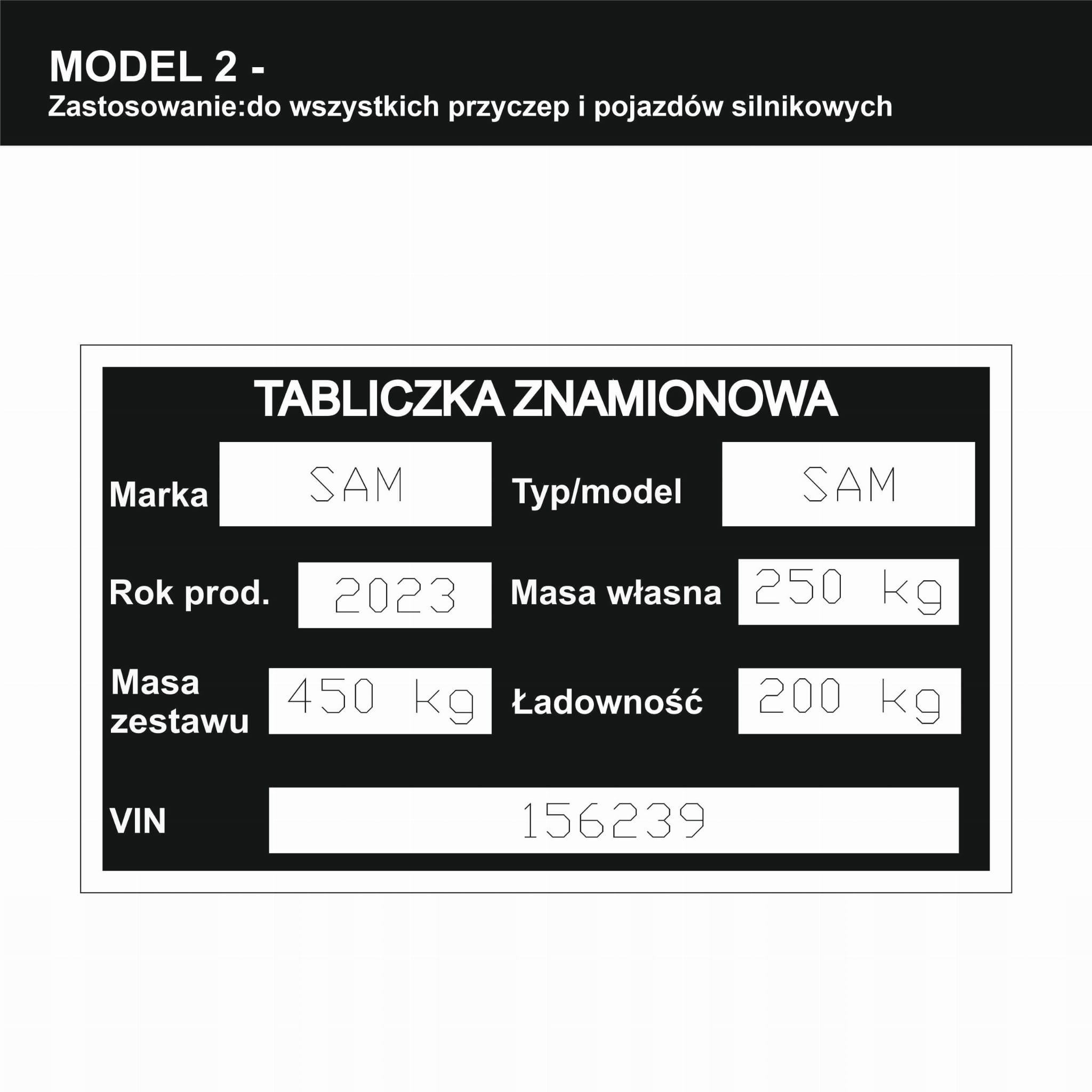 - Marka pojazdu (np. SAM)