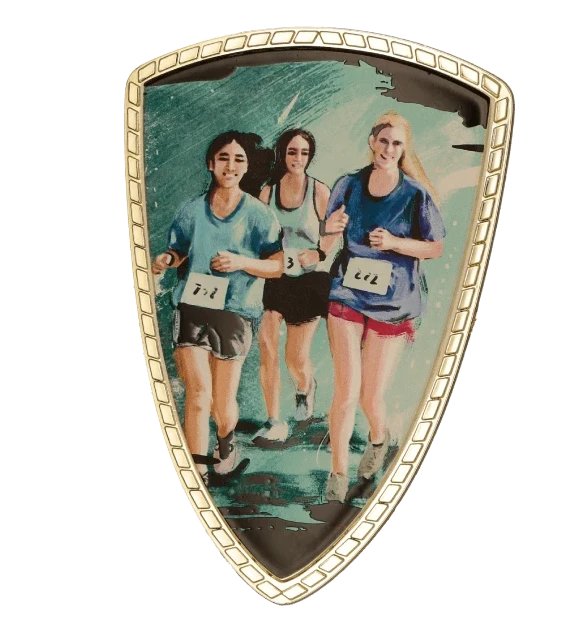 Tarcza plastikowa złota z nadrukiem - BIEGI KOBIET