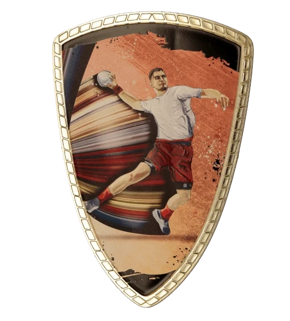 Tarcza plastikowa złota z nadrukiem - PIŁKA RĘCZNA
