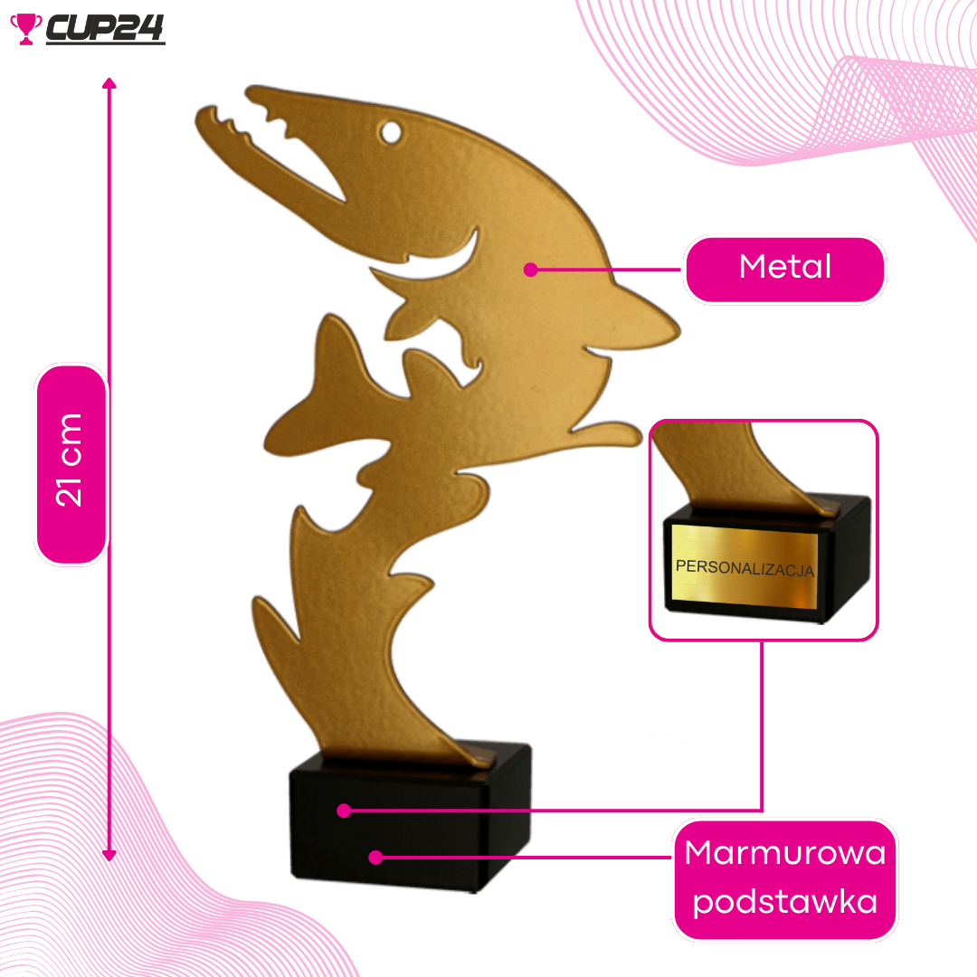Z wysokością 21 cm, statuetka ML - FIS2 jest nie tylko imponująca, ale również trwała. Umieszczona na stabilnej podstawie z marmuru, stanowi wyraz uznania dla osiągnięć i emocji, które towarzyszą każdemu wędkarzowi.
