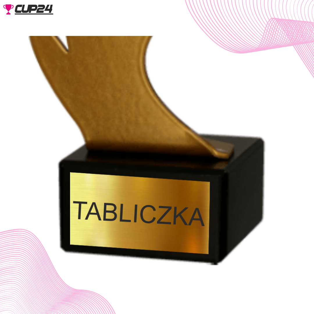 Czarna, marmurowa podstawa stanowi idealne tło dla tabliczki, którą można spersonalizować za pomocą graweru laserowego lub nadruku kolorowego. Dzięki wymiarom 45 x 25 mm, na tabliczce zmieści się nazwa zawodów, data, miejsce lub imię i nazwisko zwycięzcy, co czyni statuetkę jeszcze bardziej osobistą.